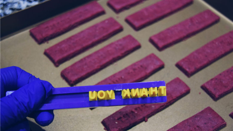 12. 轻轻在乳酪棒上压上文字。