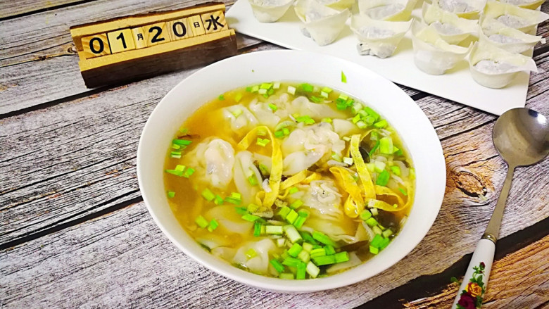 冬天的早上为家人煮上一碗热腾腾的馄饨,爱的味道,暖暖的!
