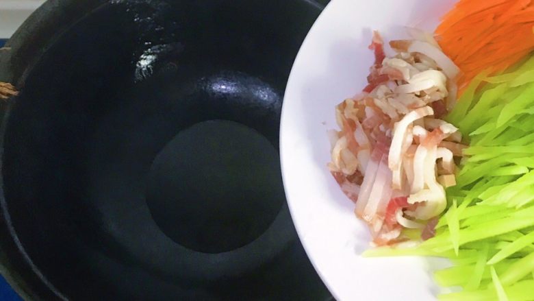 莴笋自带的清香加上腊肉的浓香,再加上胡萝卜的配色,既美味又漂亮,简直绝了……