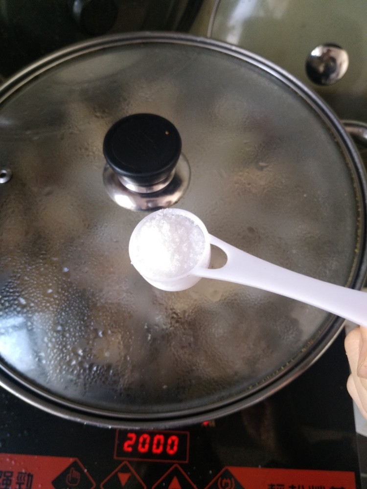 5. 撇沫:趁着水烧开沫浮在边上,用小勺撇走。