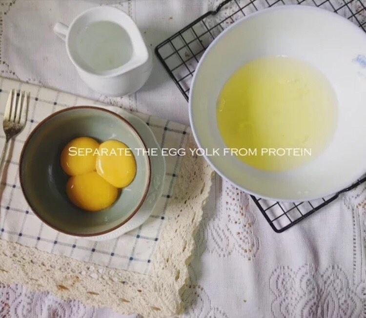 6. 【接下来制作蛋白霜】 蛋白霜需要分三次加入白砂糖 这是第一次,打出大泡泡的时候加入第一次