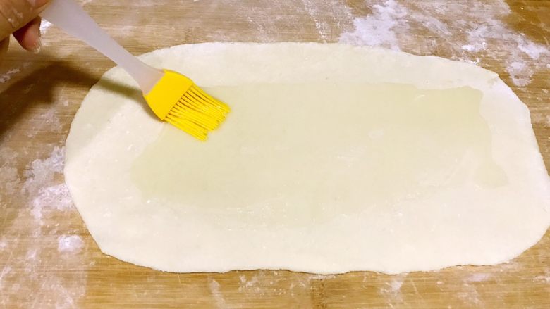 15. 用手按压成饼的形状,锅中放油,用最小火烙饼。
