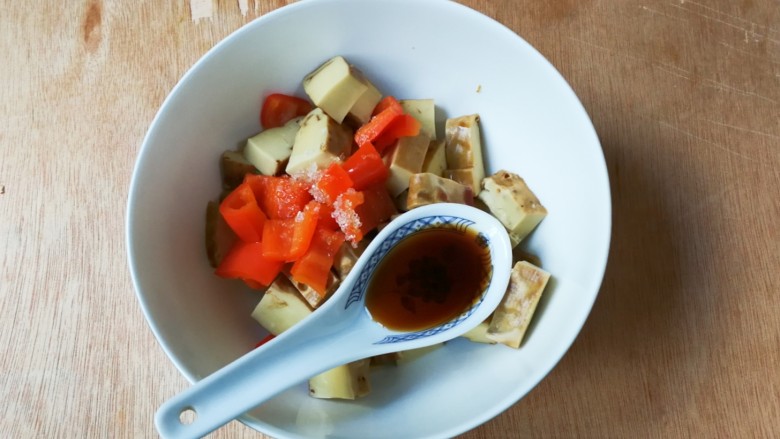 - 五香脆皮干一点要煮三分钟,蒜泥要提前剁好氧化十五分钟。