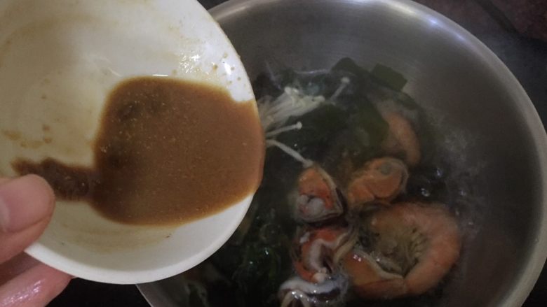 味噌是一种非常受欢迎的调料,与海鲜搭配,让汤多了一份大海的味道,再加上金针菇的甜味,绝对是一道让人无法忘怀的好汤。