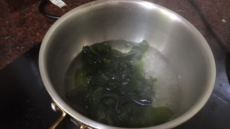 3. 锅中倒入适量清水和油,水开放入裙带菜