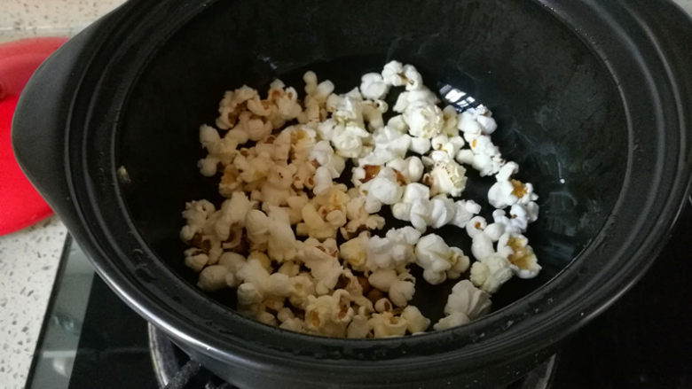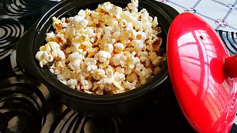 7. 关火,静置三十秒再开盖。又白又胖的玉米花可以吃了。