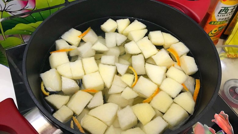 9. 将苹果和蜜梨全部浸泡在饮用水内