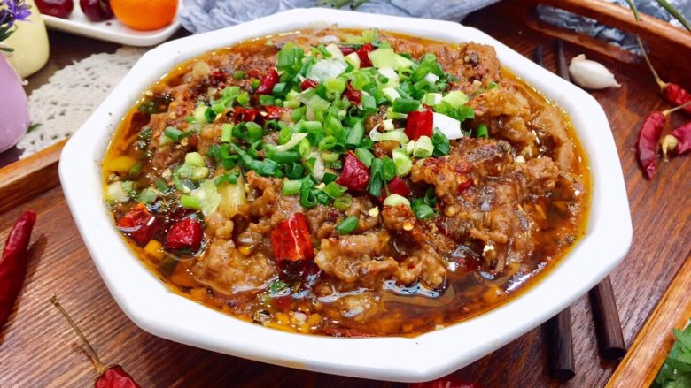 水煮肉片肉味香辣,软嫩,易嚼。吃时肉嫩菜鲜 ,荤素塔配,汤红油亮,麻辣味浓,最宜下饭,为家常美食之一。特色是“麻、辣、鲜、香”。也是我喜食肉肉之一!