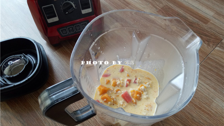 4. 放入南瓜、胡萝卜煮软,捞出;