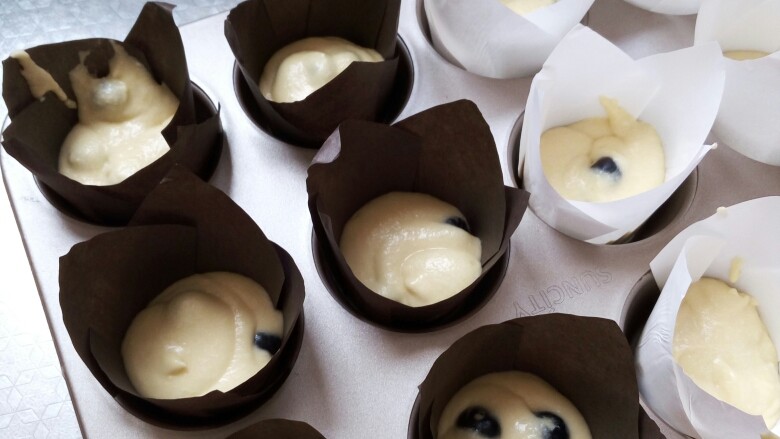 15. 挤在纸杯三分之一处或者一半都可以 因为泡打粉会使蛋糕膨胀