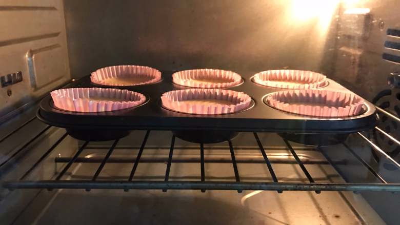 6. 倒入垫了纸托的六连模具中8分满。