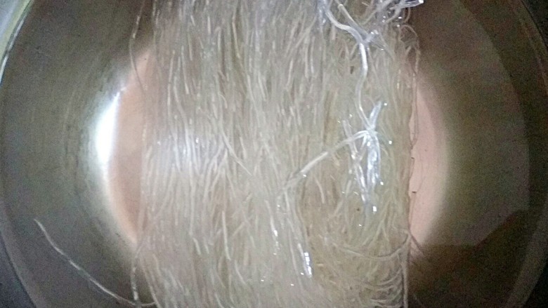 2. 粉丝用热水泡软洗净后沥干备用。