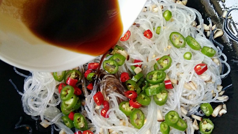 8. 再放入辣椒圈,倒入调好的酱汁。