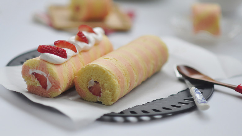 条纹草莓小蛋糕卷