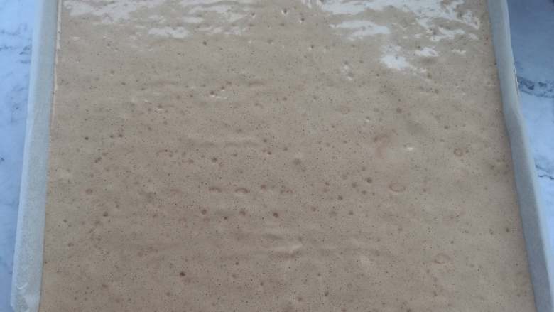12. 倒入学厨正方形烤盘中,轻震,刮平