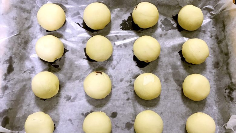 18. 摆在烤盘上,用手将它们修整的圆圆的。