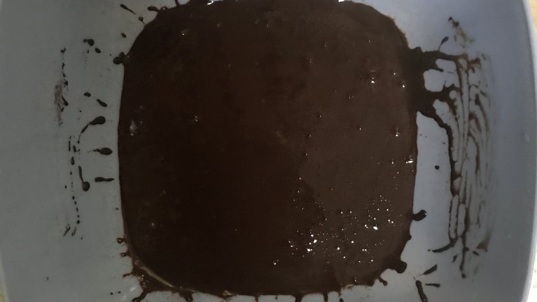 11. 均匀取三分之一蛋黄液倒进可可液中搅拌均匀