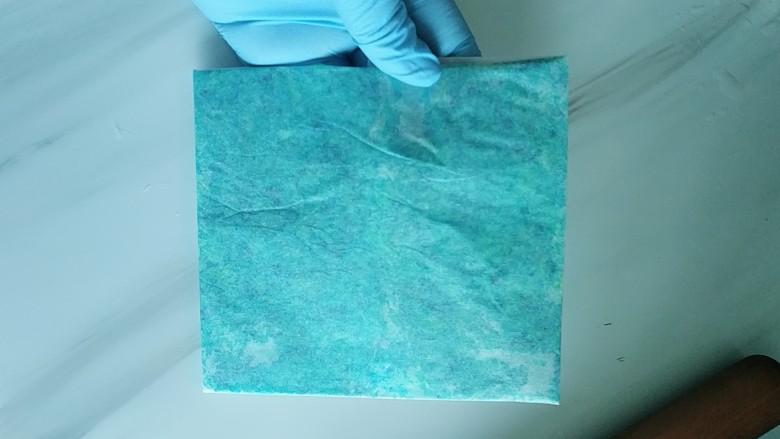 16. 装入油纸,擀平整,冷冻30分钟,第二种彩色芝士完成。