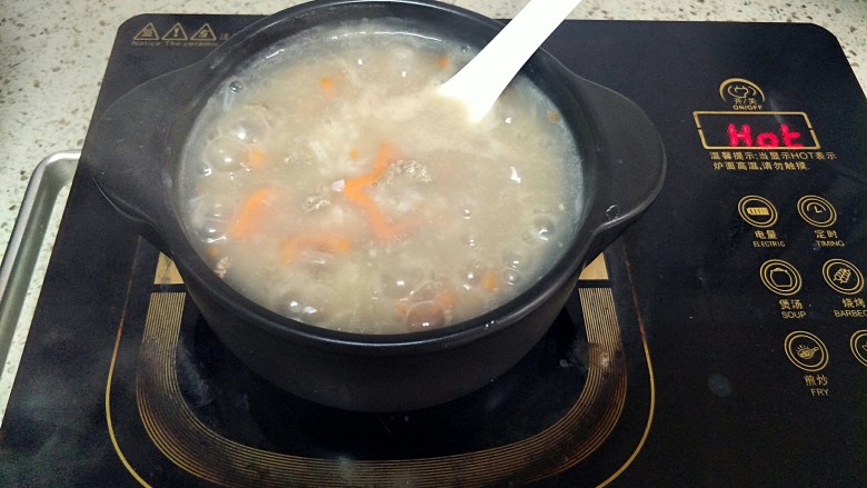 6. 米汤煮开后拿掉盖子,要时常搅拌一下防粘底
