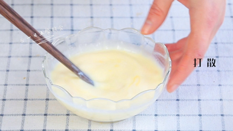 3. 1个鸡蛋打入100克纯牛奶中,打散鸡蛋。 >>1岁以下宝宝牛奶可以是配方奶,母乳。1岁以上可以选择纯牛奶,纯羊奶。部分牛奶过敏的宝宝要么选择深度水解奶粉,要么直接用水替代;部分蛋清过敏的宝宝用2个蛋黄。