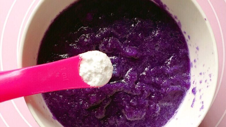 4. 加入少许小苏打(我的是150克紫甘蓝汁加入一克小苏打)