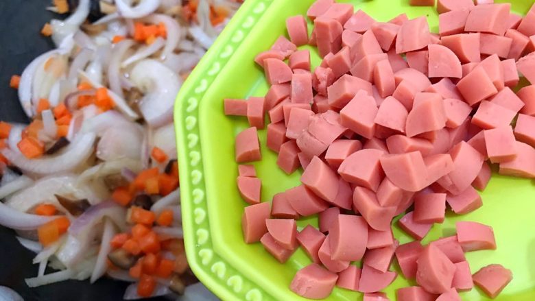 5. 火腿肠去外包装,如图所示,切成小块,备用