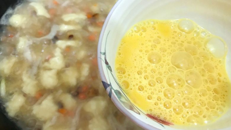 27. 下鸡蛋液,熄火,搅拌均匀,即可