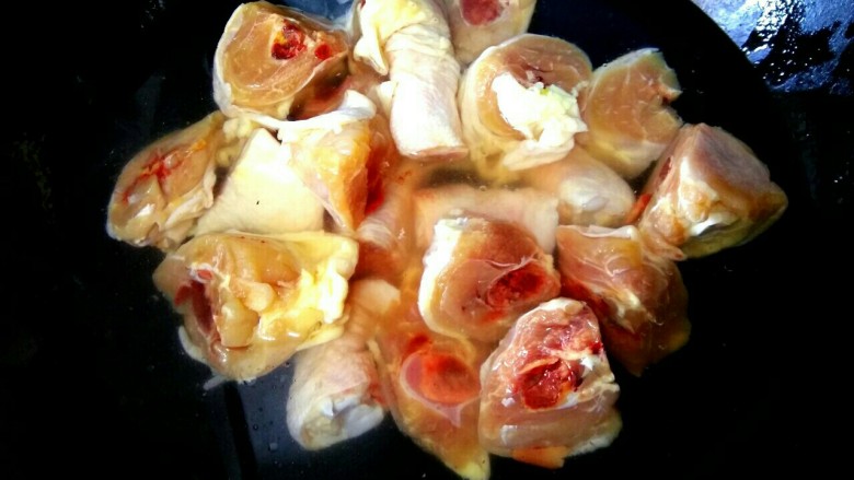 7. 扔掉脏水 ,用清水把鸡块洗净,控干水份备用