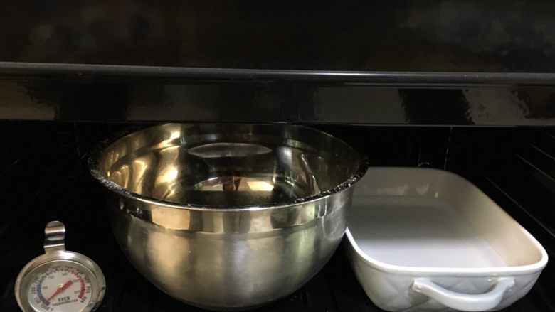 6. 冬天可以把烤箱预热到30度左右 并在里面放入一盆热水帮助发酵 给面团制造一个温暖的环境嘻嘻