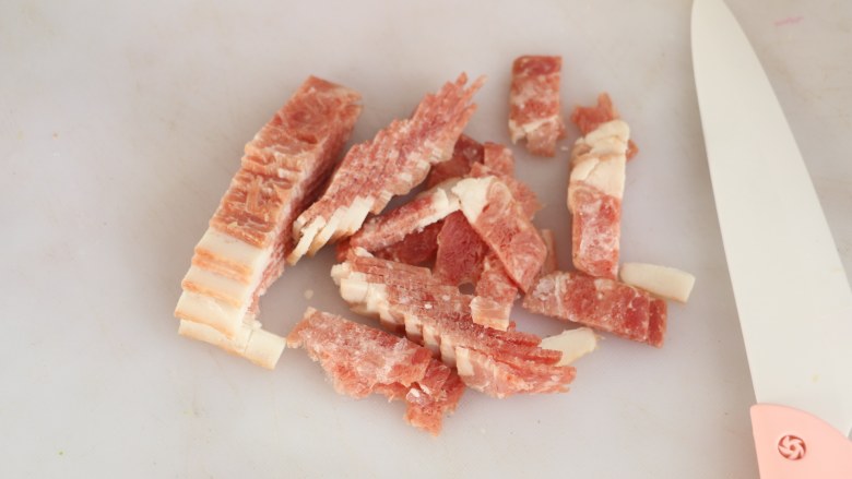 6. 锅内倒入适量食用油,先放入培根翻炒。