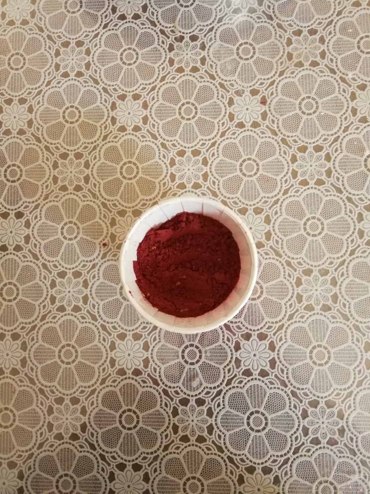 11. 再加入红曲米粉,一速搅拌均匀之后离锅,之后用刮板在搅拌一下搅匀
