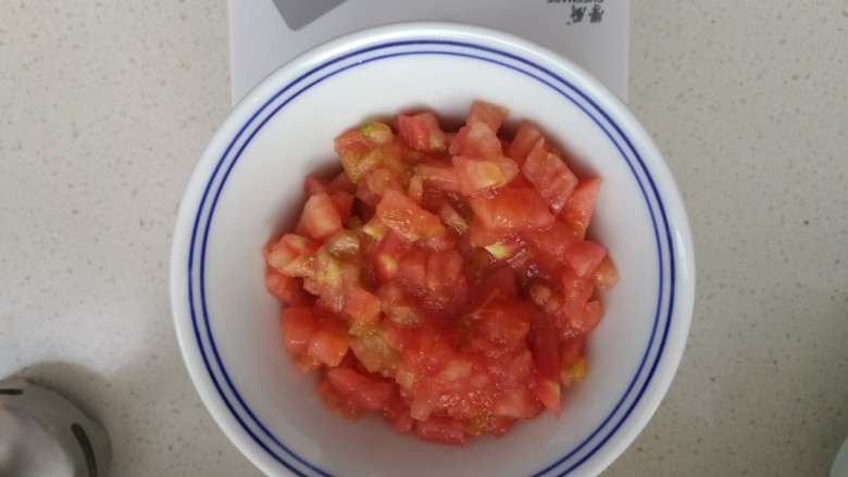 番茄鸡肉脆蔬汤,加入西红柿丁