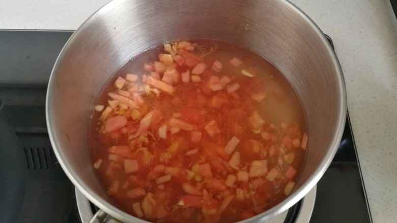 番茄鸡肉脆蔬汤,500ml水煮沸
