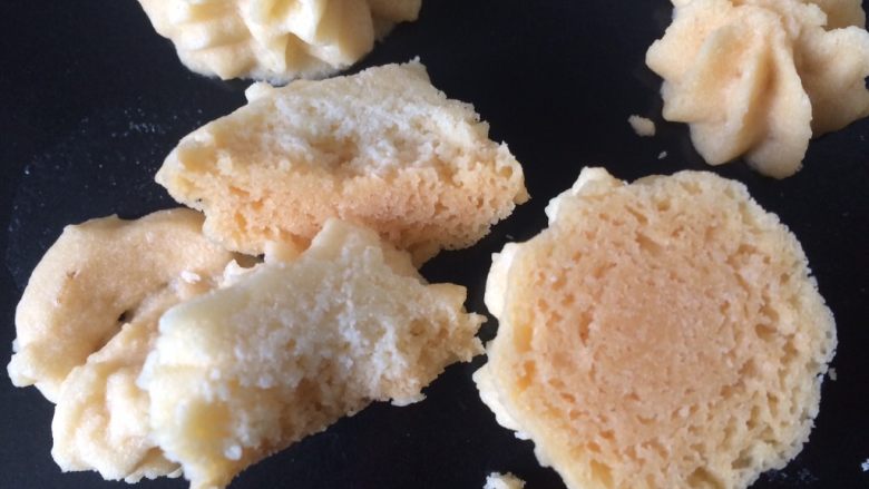 5. 接下来,洒粉,挤花,出炉,看,珍妮小姐掀开自己的蕾丝裙,内部也充满蜂窝组织,那是裹入的气泡,真的一碰掉渣呢