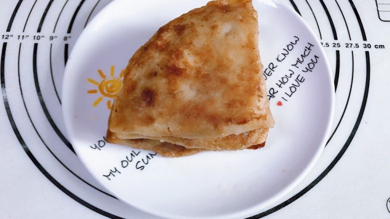 14. 热锅放油,油热之后开小火,放入饼小火慢煎