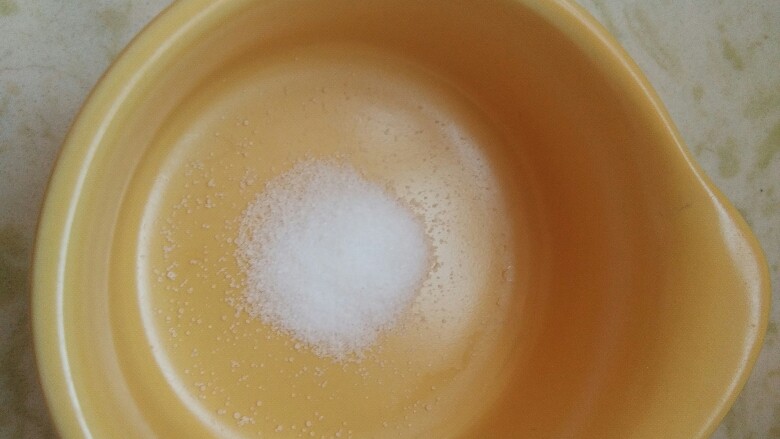 11. 在鸡翅腌制的同时,我们要做一碗酱汁,酱汁调料全都是前面备好的,找一个干净的调料碗,加入盐。
