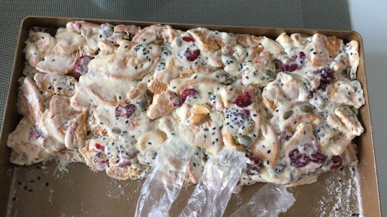 11. 放饼干,快速翻拌,可带手套协助翻拌