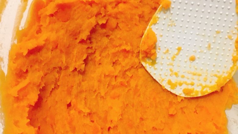 2. 出锅倒进盆里,趁热用饭勺/刮板压成泥状。 注:喜欢吃地瓜颗粒的可以像我这样不要压全碎。