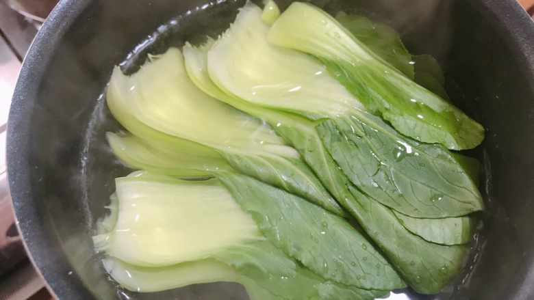 14. 油菜焯熟(可以整颗,我的这个比较大就把外面的都掰开了)