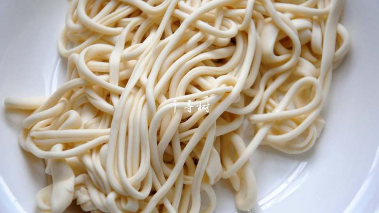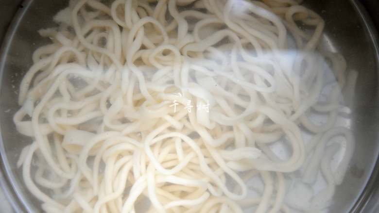 8. 煮好的拉条捞出过凉水,防止粘接到一起,过水后控水备用。