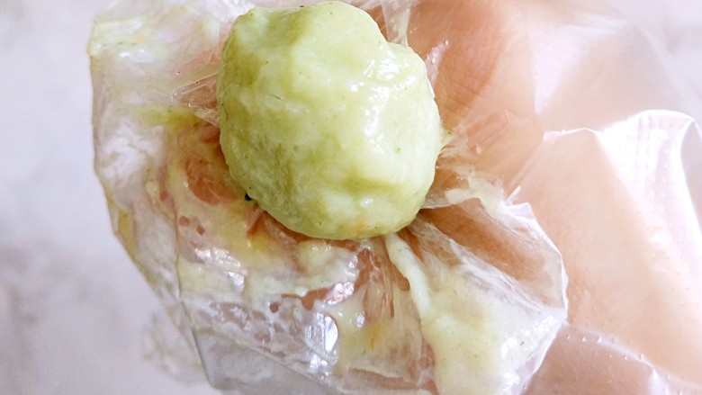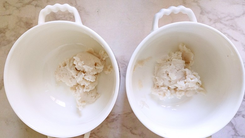 7. 分成两份,我这里鱼泥分别是45g,45g的