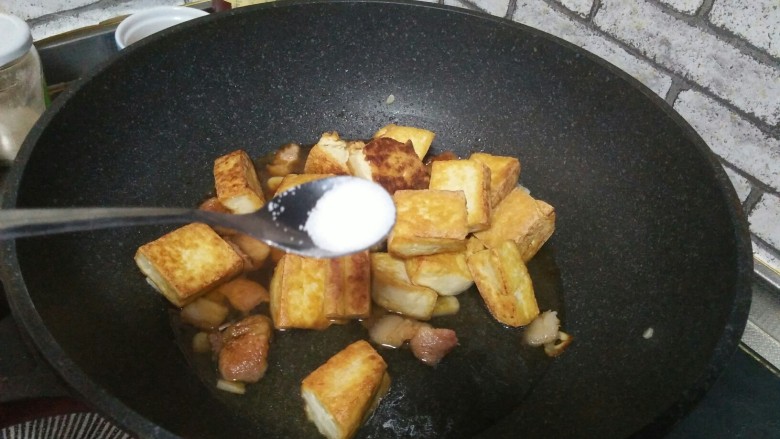 4. 豆腐放油锅煎至金黄,取出装盘备用