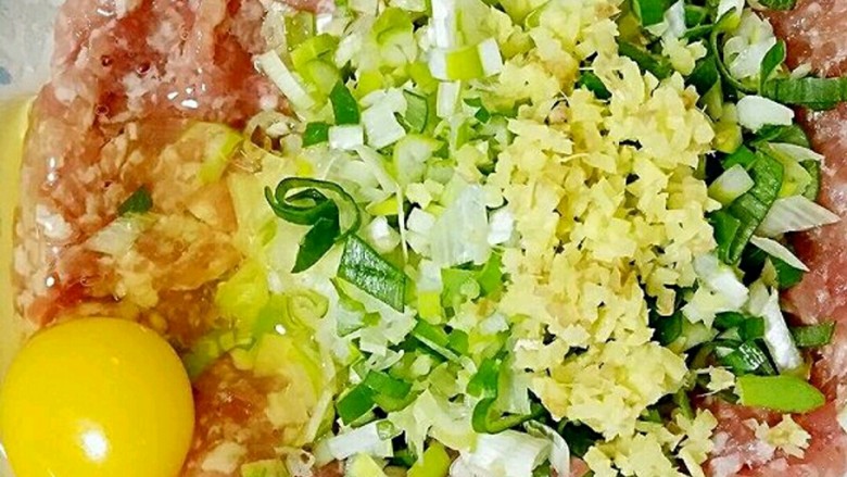 4. 将泡发的干香菇切碎加入肉馅中。