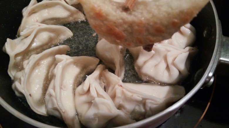12. 煎至饺子微黄【像这样就可以了】