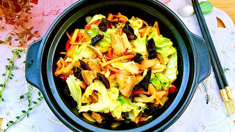 23. 把包菜盛入干烧锅中,小火加热两分钟,即可上桌