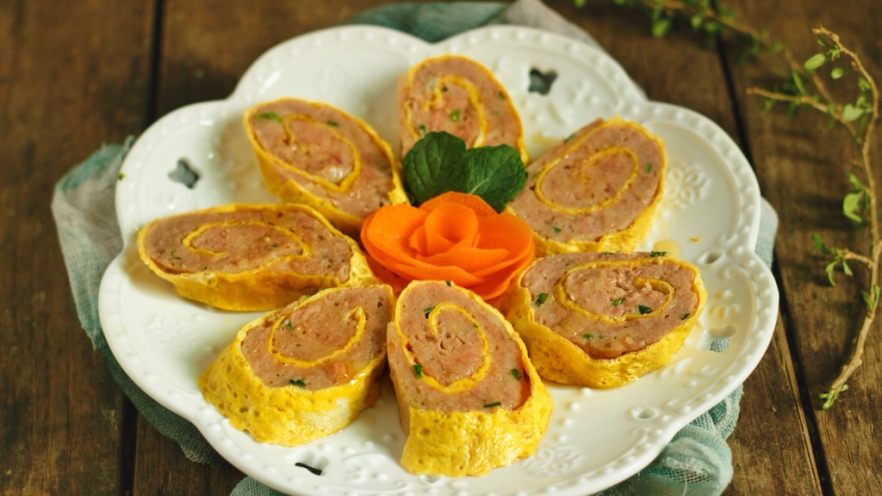 葱香肉末蛋卷