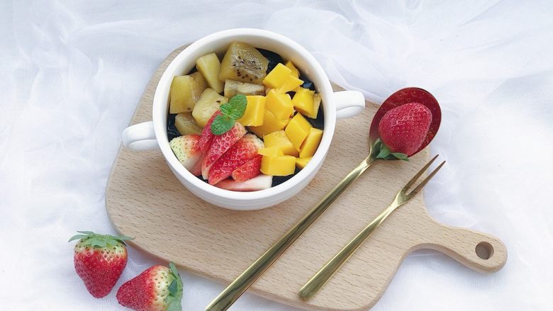 19. 水果切粒准备好放在一旁待用(也可以换成自己喜欢的水果)