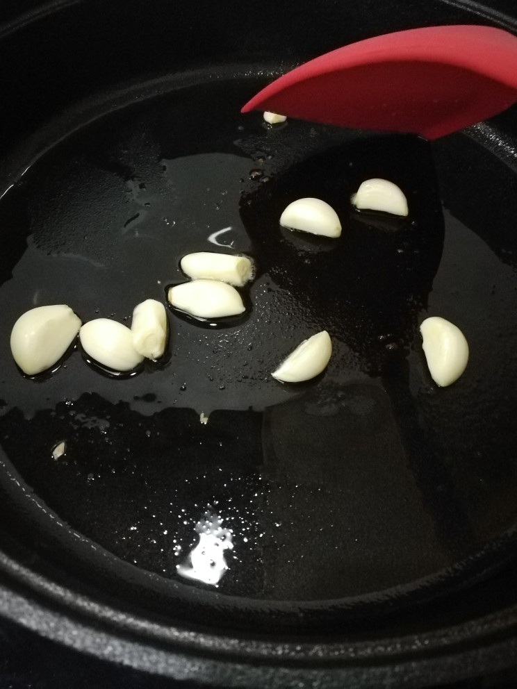12. 把煎好的牛尾移到汤锅里,大蒜不要。加入100nl左右的红酒。