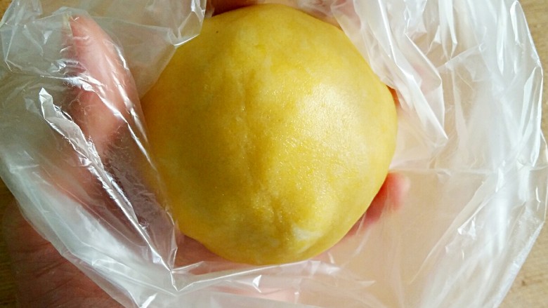 9. 将揉好的面团放进保鲜袋中,放入冰箱冷藏1小时。