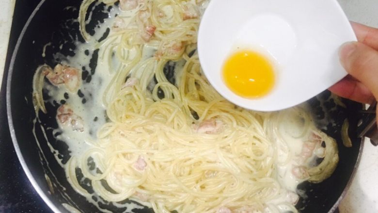 8. 放入盐和黑胡椒,carbonara一定是要加黑胡椒的哦。